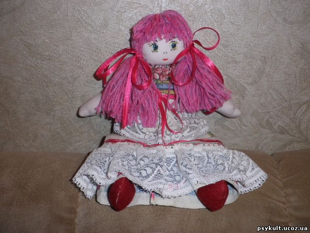 ![]() Девочку зовут МАЛИНКА (угадайте - почему! :) ) Обычная текстильная куколка. Это - моя любимица. Такого типа куклами можно играть. Это не интерьерная кукла - мягкая, добрая, хоть и серьёзная. ![]() ![]() | |